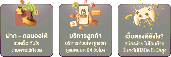 ตอบ : ข้อเด่นคือการบริการ 24 ชั่วโมง ความเร็วในการทำธุรกรรม และโปรโมชั่นเงินเครดิตฟรีสำหรับสมาชิกใหม่ รวมถึงการันตีความปลอดภัยด้วยเทคโนโลยีเข้ารหัสข้อมูล